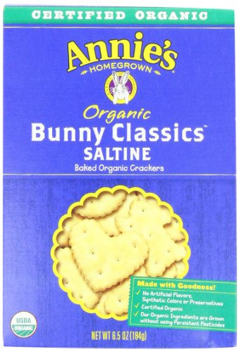 Flaky, crisp, light, and pure, our saltine bunny classics are simply great. Just the right amount of organic wheat flour, yeast, expeller-pressed safflower/sunflower oil, and salt give these saltines a classic style. Match them up with tomato soup, peanut butter, cheese, or nothing at all. Family and friends will love them.Annie's Homegrown Organic Bunny Classic Crackers Saltines, 6.5 Ounce Boxes (Pack of 6) - I highly suggest you to buy it at Amazon.com. They have Special offer this time.