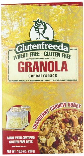 Glutenfreeda's Granola is made from wholesome, natural ingredients including certified gluten-free oats and flax seeds. Our granola is authentic tasting because it is authentic, no artificial ingredients or substitutions and therefore, our Granola appeals to everyone, gluten-intolerant or not, the perfect cross-over product. This delicious, traditional style granola is an ideal breakfast cereal or a great anytime snack. We make gluten-free delicious...it's what we do. All our products are produced in our own 100% gluten-free facility.Glutenfreeda's Granola Cranberry Cashew Honey, 10.5-Ounce Boxes (Pack of 8) - I highly recommend you to get it at Amazon.com. They have Special offer this time.