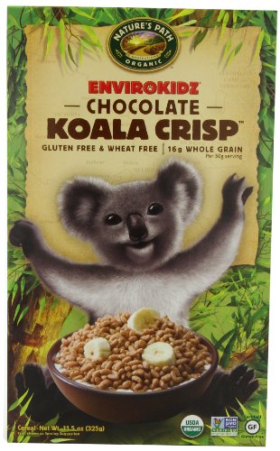 A gluten free rice crisp cereal with organic cocoa powder for kid-pleasing taste. Don't let the kids fool you - they're good for adults too!EnviroKidz Organic Chocolate Koala Crisp Cereal, 11.5-Ounce Boxes (Pack of 6) - I highly suggest you to buy it at Amazon.com. They have Special offer this time.